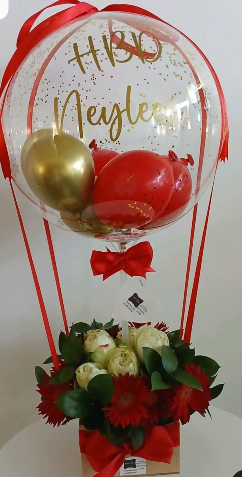 CJITA DE 12 ROSAS 6 CHOCOLATES Y GLOBO